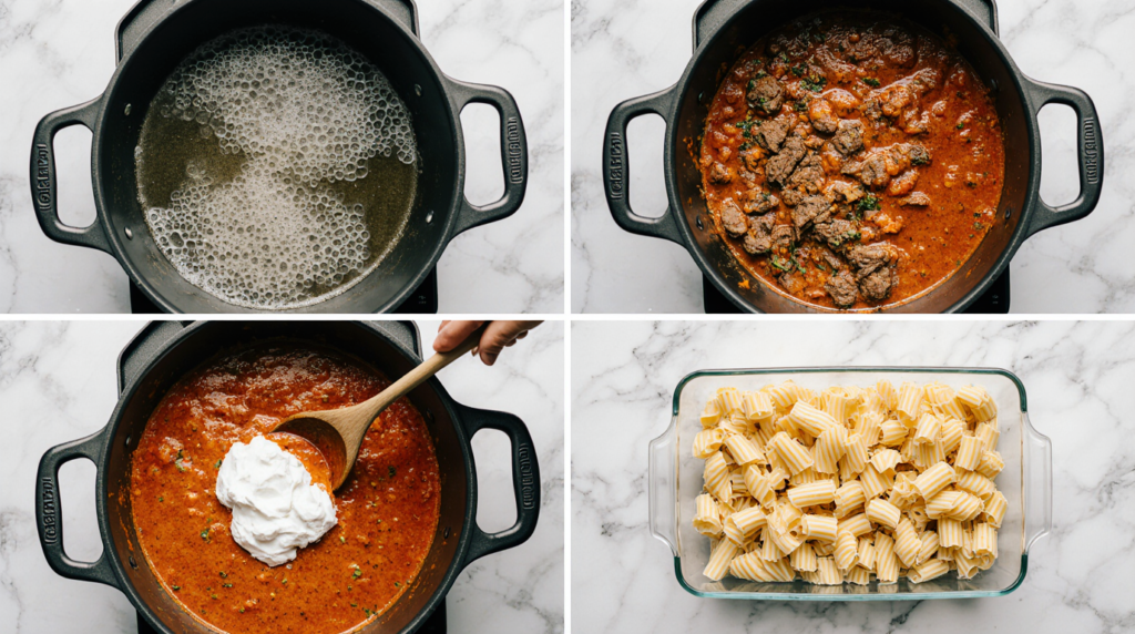 | The Savory Sauce Components | Ground beef or Italian sausage, canned tomatoes, onions, garlic, herbs | Adds depth and meaty flavor to the dish |