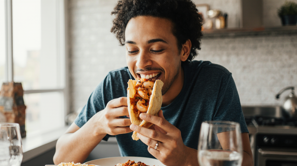 Cajun Shrimp TacosShrimp, Cajun seasoning, tortillas, fresh produceSpicy, savory, smoky, vibrant