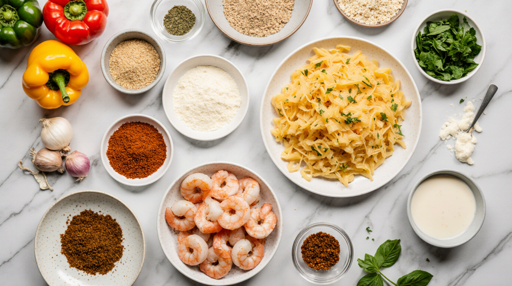 Creating a delicious Creamy Cajun Shrimp Pasta begins with selecting the finest ingredients. The quality of your dish is directly related to the freshness and authenticity of what you put into it. Let’s dive into the must-have ingredients that will make your Cajun Shrimp Pasta stand out.