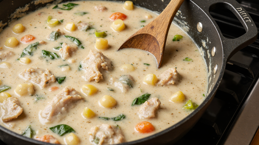 By following these steps, you’ll be able to create a deliciously creamy chicken filling that’s sure to make your easy chicken pot pie recipe a family favorite. Remember, the key is in the details: a good roux, tender chicken, and perfectly cooked vegetables.