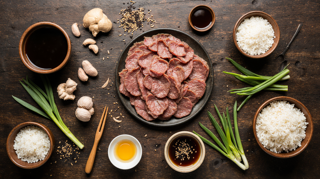Creating an authentic Korean Bulgogi rice bowl starts with understanding the essential ingredients that make this dish so flavorful. The quality and combination of these ingredients are what set a traditional Bulgogi apart from other beef dishes.